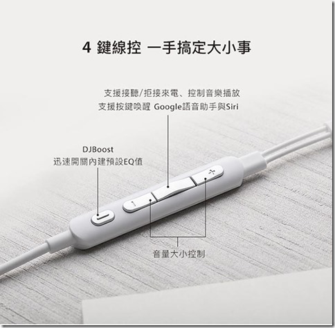 ●四按鍵線控並附有麥克風與 DJ Boost™ 功能
