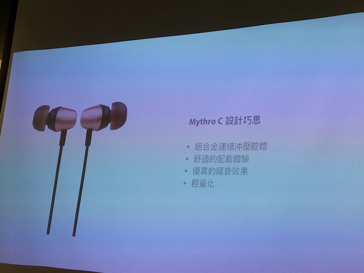 再來就是介紹Mythro C入耳式產品,採用鋁合金連續沖壓,造型獨特,並且具有輕量化及優異的隔音效果!