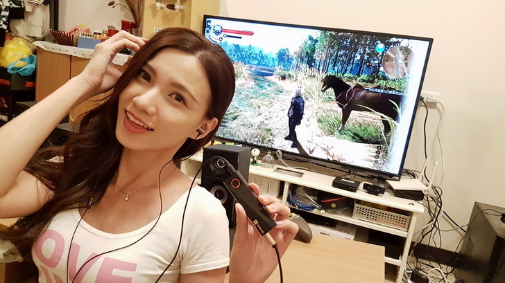 然後再叫美眉戴上 XPUMP Premium 搭配 XROUND AERO耳機,然後她就覺得這樣像是在玩兩款不同的遊戲,而且不會像耳罩式耳機覺得頭很重,長時間下來耳朵也不會覺得悶熱。(這也算是另類的優點)