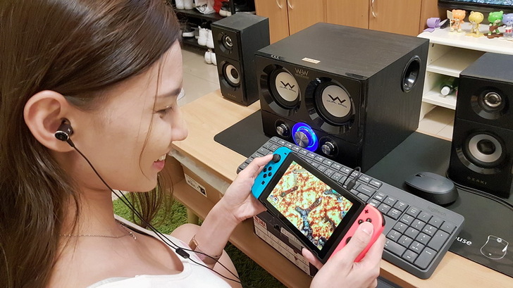 ▼ Switch 當然也是要連接電視,大家一起玩才爽,此時透過 XPUMP Premium 接上喇叭,就可以大家一起享受 XPUMP Premium 對於音場提升的效果。