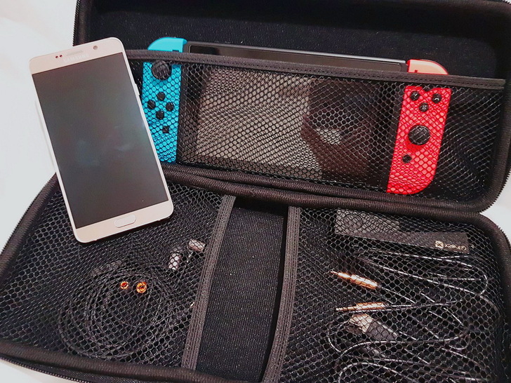 ▼ 筆者現在也都會把 XPUMP Premium 3D智慧音效處理器、XROUND AERO耳機、連接線材 一起放在 Switch收納盒,好整理又隨時可以享受好音質。