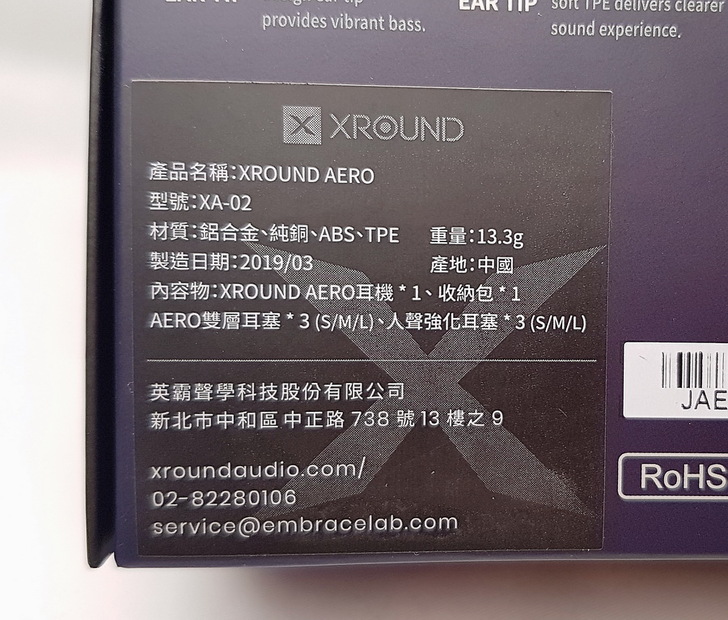 ▼ 包裝正面:低調簡約的外盒,XROUND品牌字樣跟音波圖案背景。