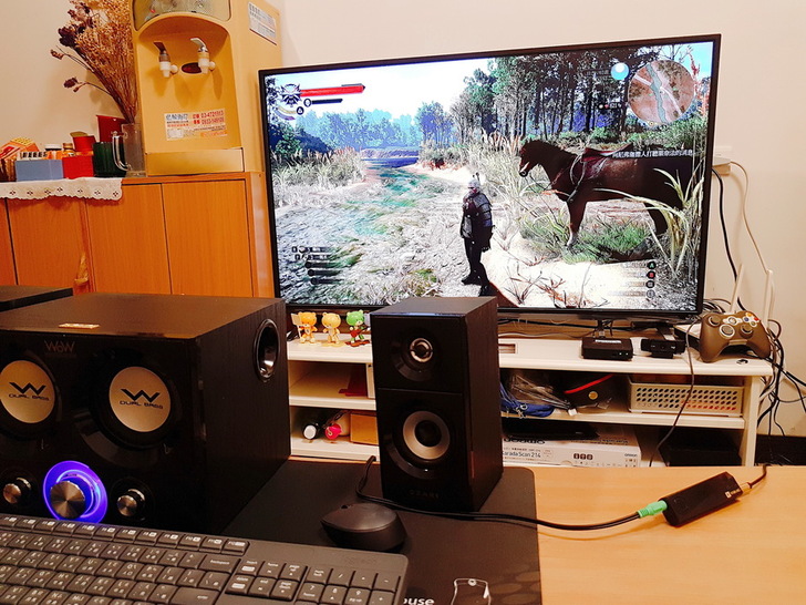 筆者把 XPUMP Premium 直接接上 重低音喇叭,由於 巫師3 場景超大,而且對於細節很講究,主角騎著馬在野外時,水流聲由遠到近、天上飛的鳥叫聲、風吹過的聲音,在還未經由 XPUMP Premium 處理前,感覺水流聲很短暫,甚至天上飛的鳥叫聲 一下子就消散了;在經過 XPUMP Premium 處理之後,立馬覺得遊戲的世界更為寬廣遼闊,尤其是天上飛的鳥叫聲,從前面飛過去跟後面飛過去,由遠而近再到遠,空間感完全呈現。
