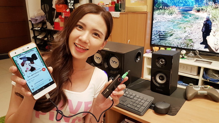 ▼ 手機使用 Type C to Micro USB 連接 XPUMP Premium,使用喇叭來聽音樂。