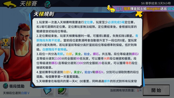 最後天梯賽就類似競技場,不過比較特別的是系統會先讓你打定位賽,畢竟大家的程度不一樣,這樣才不會全部從最低階開始慢慢爬,段位共分為5階所以如果有看到大師或傳奇稱號的玩家可是要放尊重一點XD