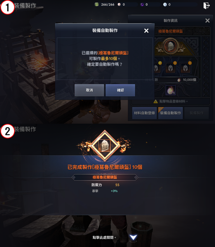 另外裝備控的玩家也不用擔心,還有增加了新的裝備自動製作功能,可在領地內的裝備工坊選擇特殊製作就能開始自動製作裝備了啊。