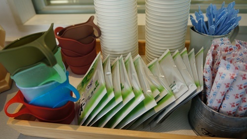 候診區有舒適的沙發椅加上咖啡機與茶包