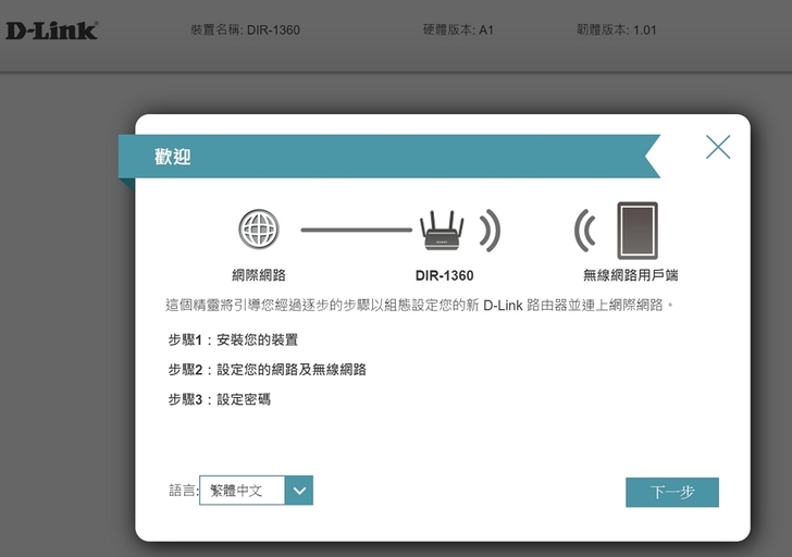 跟DRA-1360的配對方式,只需要依據D-LINK的APP引導即可輕鬆完成