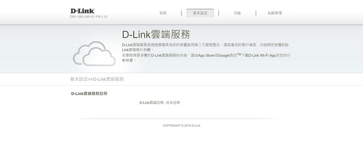 額外附加的D-LINK雲端服務,主要用途是提供D-Link帳號能夠跟McAfee 、GOOGLE帳號連結使用