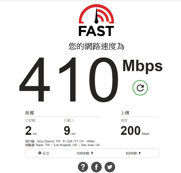 實際測試環境 3 房兩廳室內,對外網路環境500M/250M