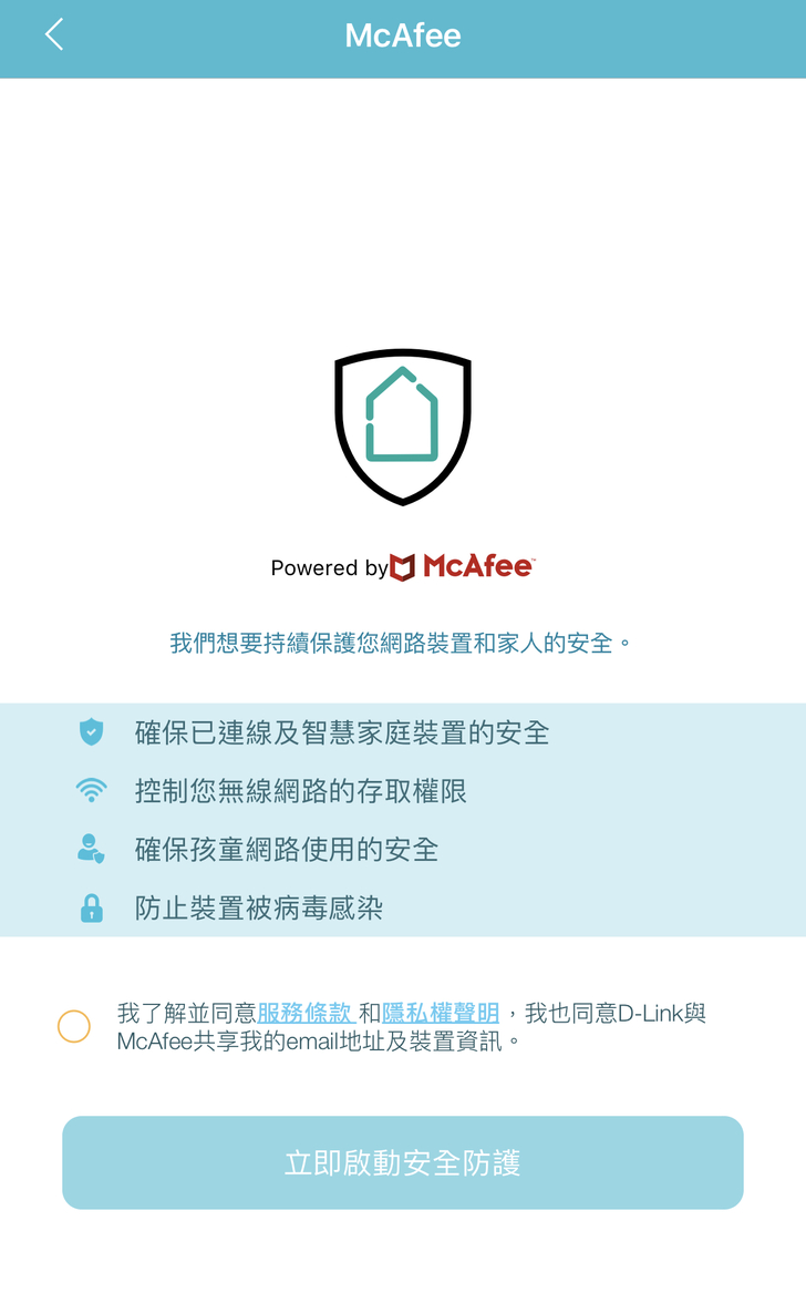 透過D-LINK WiFi中設定安全防護 McAfee 功能
