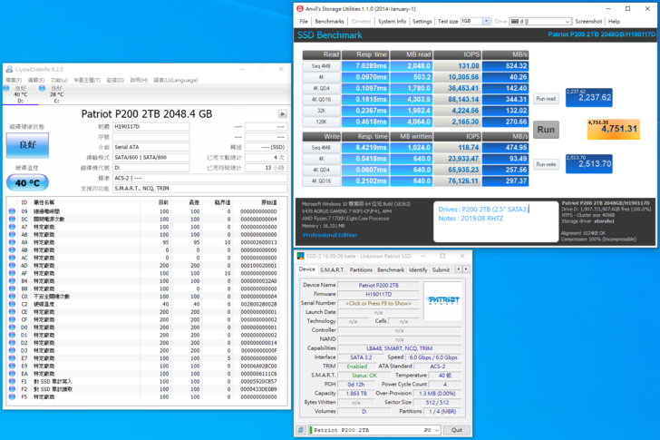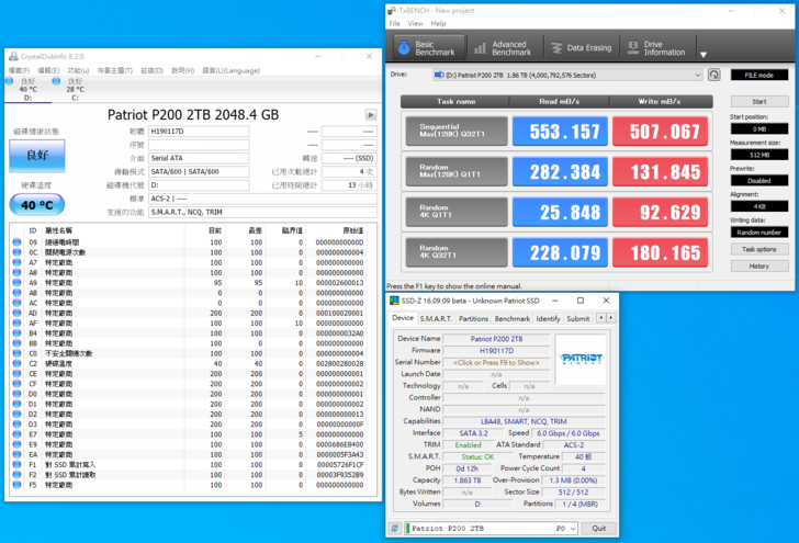 2.5” SSD SATA3 算是很成熟的產品,Patriot P200 2TB 在各方面的軟體測試讀寫都還不錯,雖然比不上更快速的 NVMe M.2 破千的速度,但拿來用在 PC / NB / Console 也能夠有明顯的升級感受。