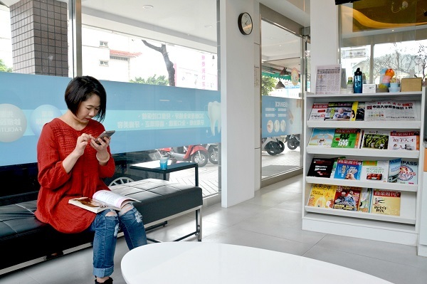 候診區又和二樓看牙診間有做區隔聽不到治療牙齒器械聲音更為之放鬆,