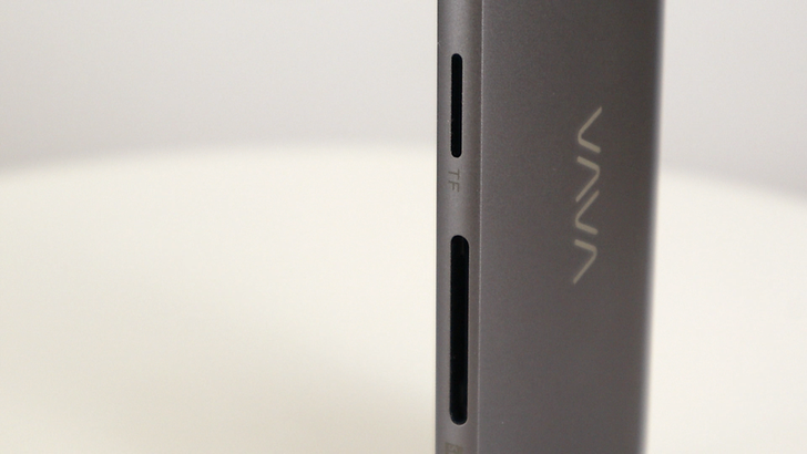 普遍常見的hub是讓microSD裸露出來,但是VAVA的設計採用自彈式卡槽,完全隱身在裡面。好處是這樣把記憶卡裝在上面,就不用怕勾到其他東西,我覺得非常不錯。更進階的應用是,放入一張讀寫速度不錯的microSD,就等於帶了一個有隨身碟功能的集線器。