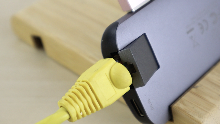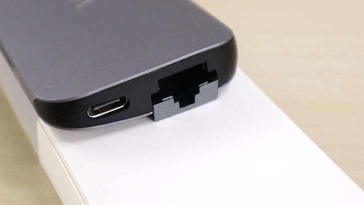 RJ45支持1Gbps,採用開合的機構,讓網路孔的厚度大幅減少,從而降低整個外接裝置的厚度。
