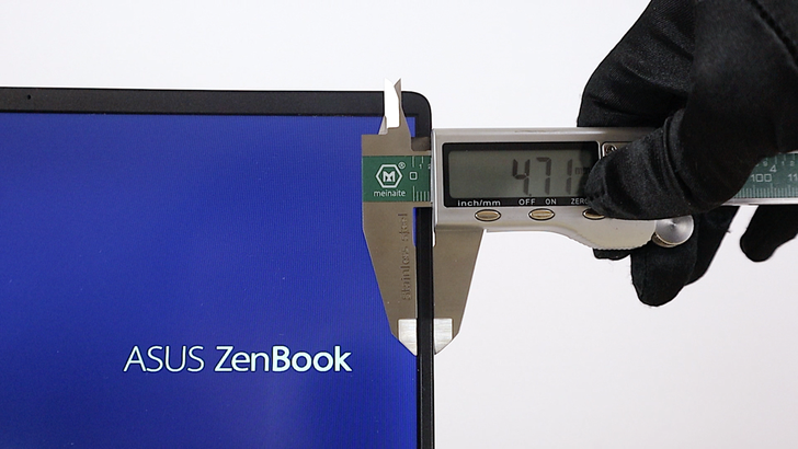 官方文宣提到螢幕邊框是寫 2.8mm,腳註有說「所述側邊框寬度係指非螢幕顯示區域與機殼內側邊緣之間的距離。若包含機殼寬度,則側邊框寬度為 4mm」。實際上我們測量螢幕兩側,從顯色區域到外殼邊框是 4.7mm,同樣方式測量上邊框是 7.1mm。主打四邊窄邊框的 NanoEdge,讓整個螢幕的視覺感受很好、沈浸感很強。