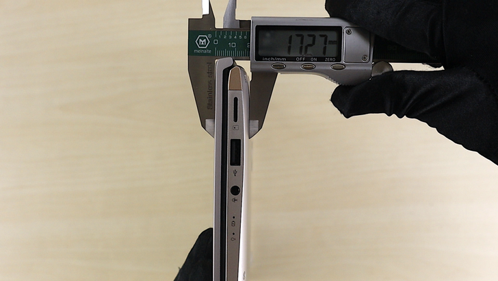 厚度的官方數據是 1.69cm,不含腳墊實際測量是 17.3cm 左右,其實差不多。