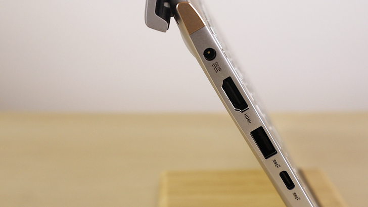 最後我們來看一下 UX333 的 I/O 部分,左側分別是電源孔、HDMI、USB3.1 Gen2 Type A、USB3.1 Gen2 Type C。要留意,這個 Type C 是不支援畫面輸出的喔,所以透過 Hub 轉接 HDMI 是沒有畫面的。
