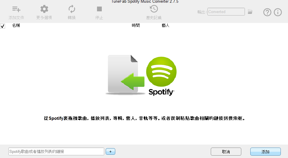 Step 2. 打開軟體,把要下載的 Spotify 歌曲拖到 TuneFab 轉檔器的主畫面。