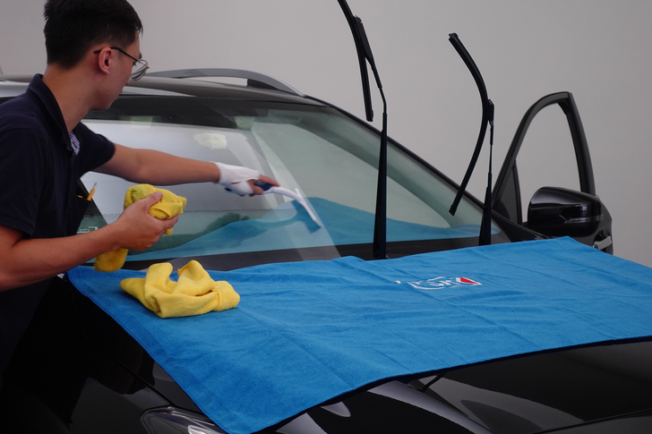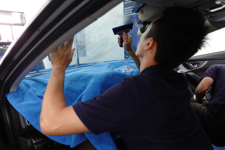 ◆刮除隔熱紙與車窗間的水份