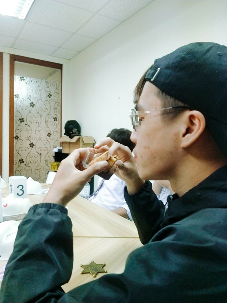 他拿到的是巧克力口味,他說這個滿有名的,而且他們公司也常買這個來送禮,他特別喜歡巧克力口味,因為這口味相當濃郁!!!