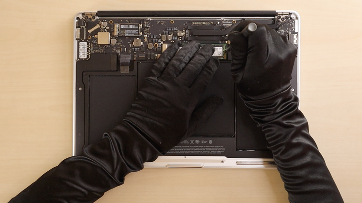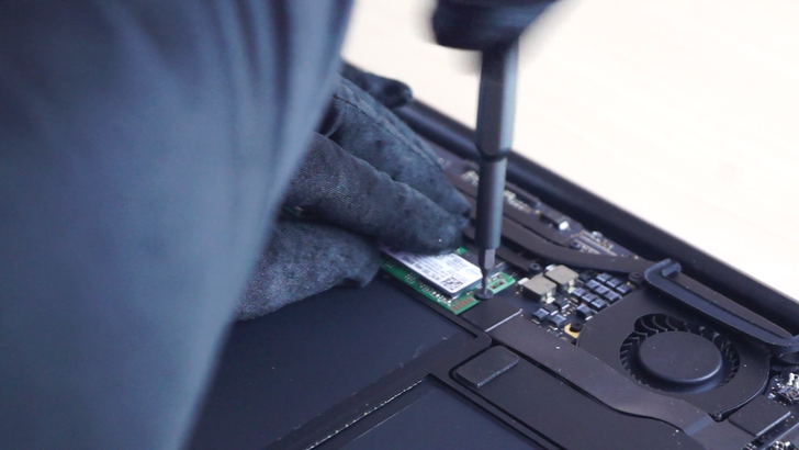 用螺絲起子將固定SSD的螺絲卸下,一樣保管好喔。