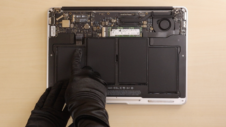 不過在拆下SSD前,還是記得將主機板與電池的連接處斷開。