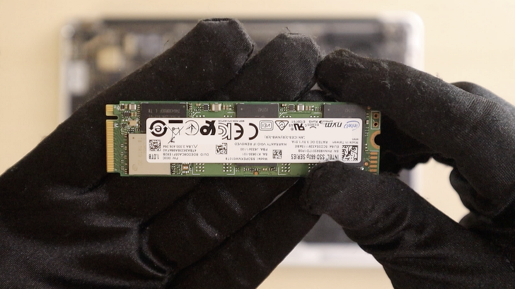 抬高後,這樣手指比較有空間把SSD抽起來。