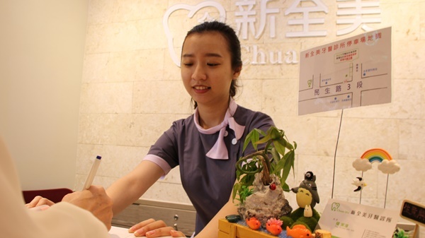 從踏進診所大門小護士就會面帶笑容從櫃檯站起來