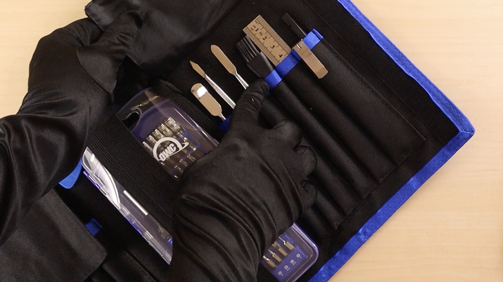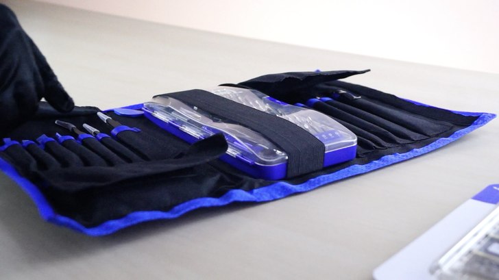 裡面有各種鑷子、夾子、刷子,甚至還有美工刀,中間一整盒的就是 72 組螺絲頭的螺絲起子組。