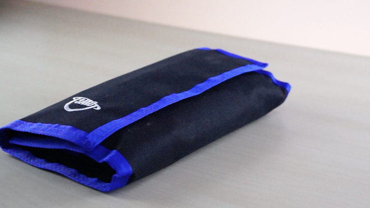 工具包外層是魔鬼氈固定,胖胖一包,主要是裡面有三層工具,其中一整盒的螺絲頭是獨立在塑膠盒中,以鬆緊帶固定。