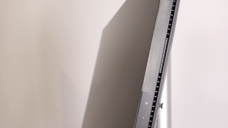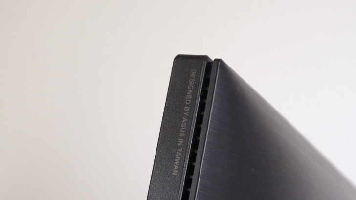 螢幕四邊框周圍有散熱孔,左側保持全素面,表面的磨砂處理在移動螢幕時更有摩擦力。
