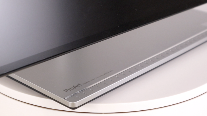 底座佔用面積不小,但這麼重的螢幕底座的確是需要穩一點。底座的用料也相當厚實,表面做工卻也細緻到位,左下角印有 ProArt Logo。