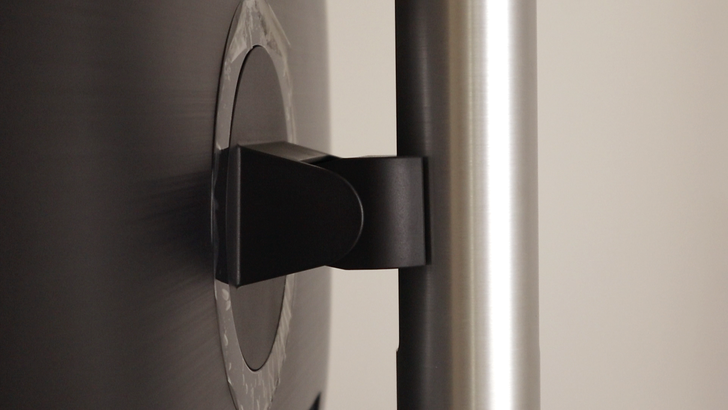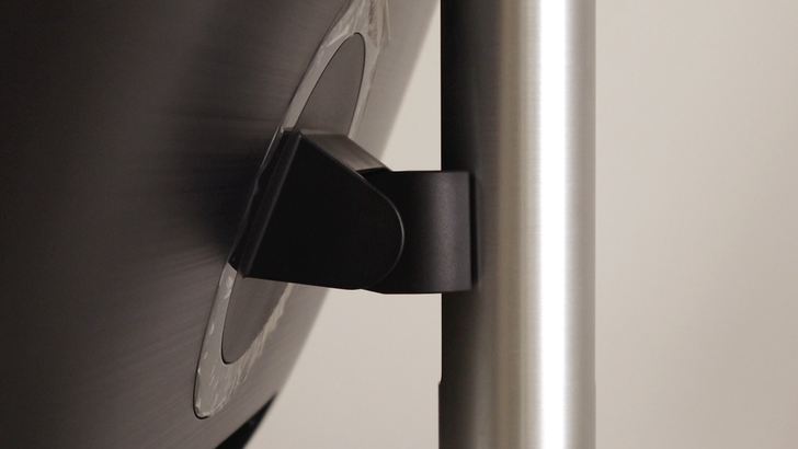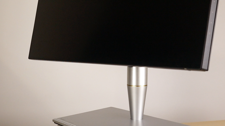 整個螢幕支架上有拉髮絲紋的表面處理,其重量與金屬的材質讓人有很堅固的安全感。