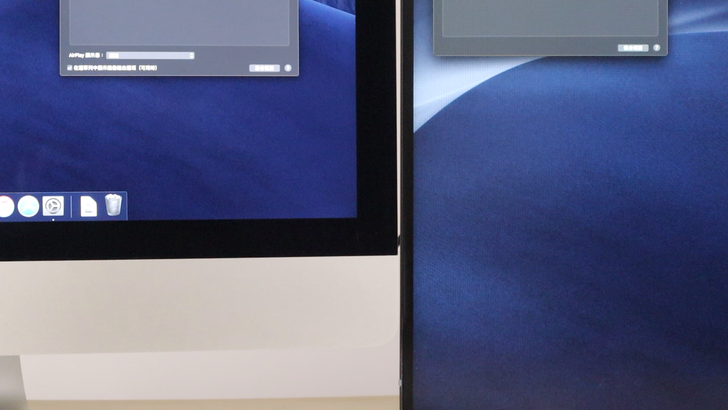 其窄邊框在 iMac 旁更顯緊緻,四周圍邊框都很窄,也沒有 Logo,從正面的視覺上來說非常簡潔自然。