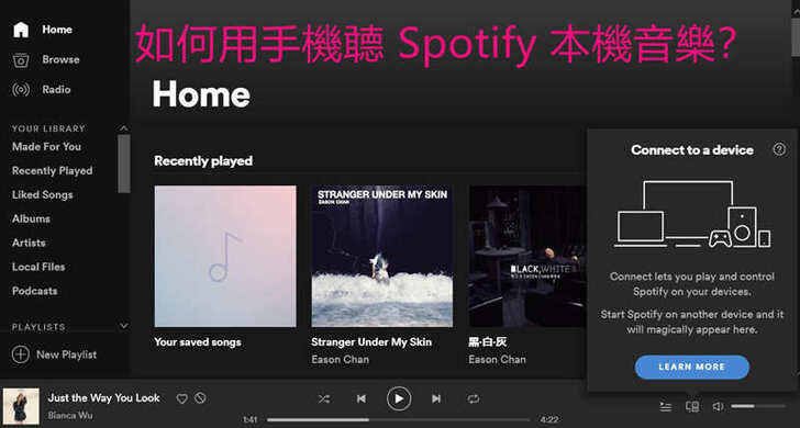 2. 確定在電腦端和手機端登入相同的 Spotify 賬戶