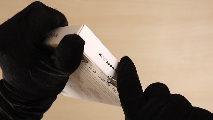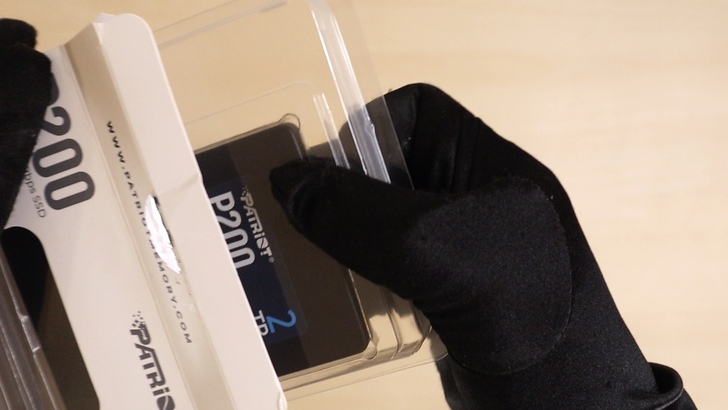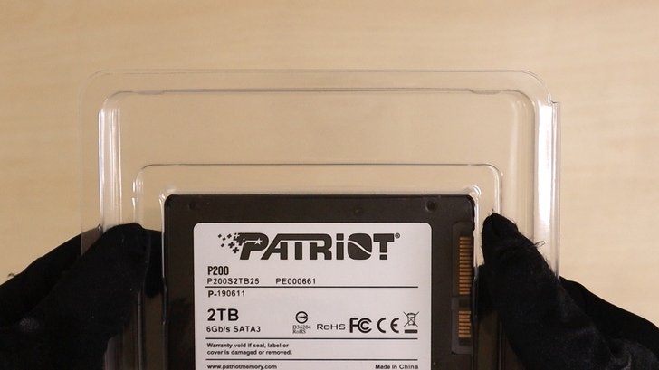用美工刀打開包裝貼紙,貼紙上面印有 Patriot 的 Logo。