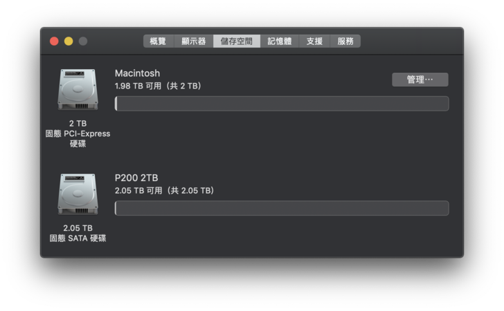 第二顆就是 SATA 3 的 Patriot P200 2TB。總共 4TB,而且全部都是固態硬碟,使用上真的很棒。