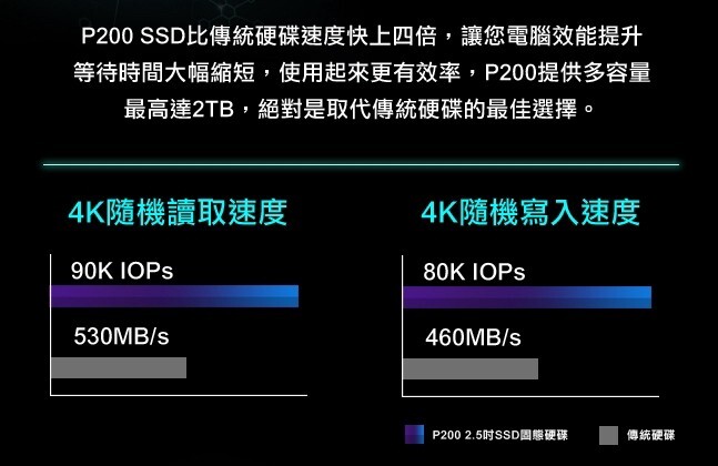 包裝側面也有 P200 和 2.5 吋固態硬碟的標示。