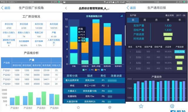 下圖都是用FineReport報表工具搭建的生產資料分析平台,都是用於實際生產的資料視覺化報表。