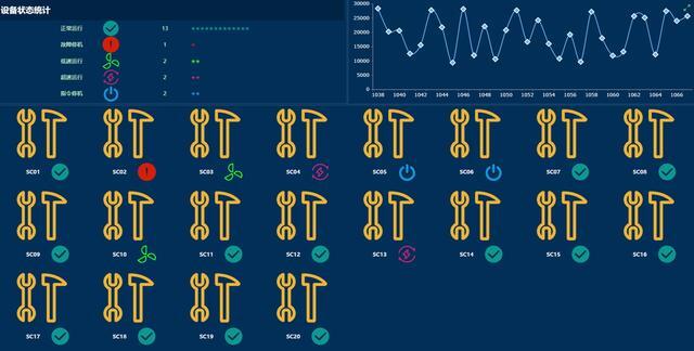 針對車間不同機台進行編號,將機台運行狀態資訊用視覺化圖形展示,機台用二維圖片或3D模型展示,即時監控不同機台的運行狀態,異常狀態資訊即時推送至負責人及其老闆手機上,提高異常處理的時效性。