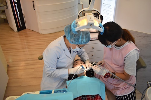吳醫師就是一副女強人模樣,帶著眼鏡、雖說吳醫師表面看上去不愛講話,非也,其實吳醫師說起話來蠻溫柔的;跟他談話不會有壓力,更不會有被強迫建議使用特殊療程,他會用詢問以及選擇題,讓我可以自己選擇能接受的治療內容,當時吳醫師看到斷面超過三分之一牙齒,抬頭細看X光片就說還好牙齒沒有傷及神經看起來還有救,如果暫不考慮上牙套來保護門牙就先替你補起來至少門面上不影響,這一點的態度,也是大力推薦他的原因之一。