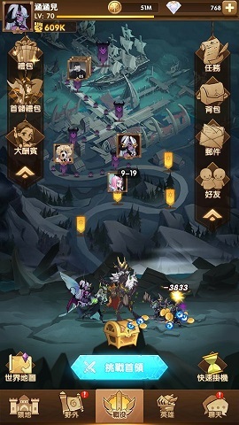 2.輕鬆玩無負擔,推關靠的是隊伍的英雄搭配,當隊伍推不了關可以選擇放置等資源讓英雄升級,無需一直在線解任務衝等打資源
