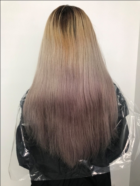 但Mars卻給我有不同的感覺,他很仔細的了解我想要什麼,再從我的髮質、臉型等給建議,還給我看很多漂髮的範例,但是每個我都好喜歡,一直問我朋友和Mars的意見,最後選了一個很美的經典歐美刷染霧光灰的顏色~