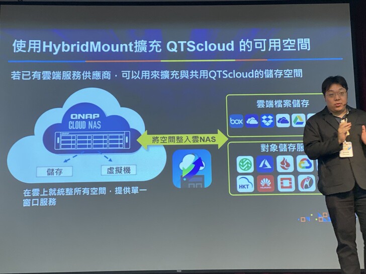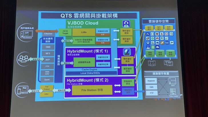 QTS 雲網關與掛載架構圖,可以彈性備份資料到不同雲端空間。
