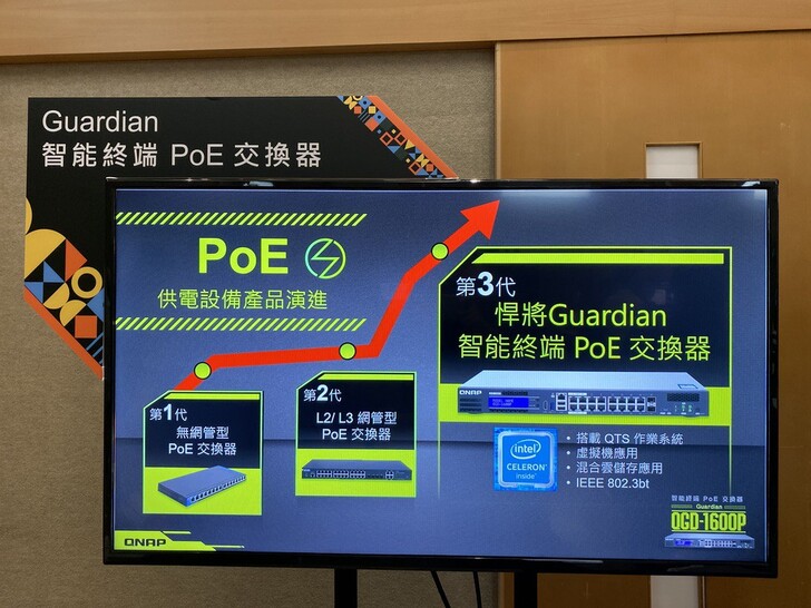 Guardian 系列的新產品智慧 PoE switch QGD-1600P,具備虛擬機應用。