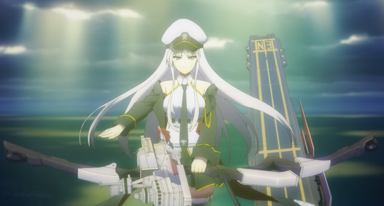 在動畫裡,海邊停泊著一艘艘的船艦,戰鬥時專屬船艦會化成大量方塊飛到她的身上變成各種裝備,有點魔法少女變身的感覺~
