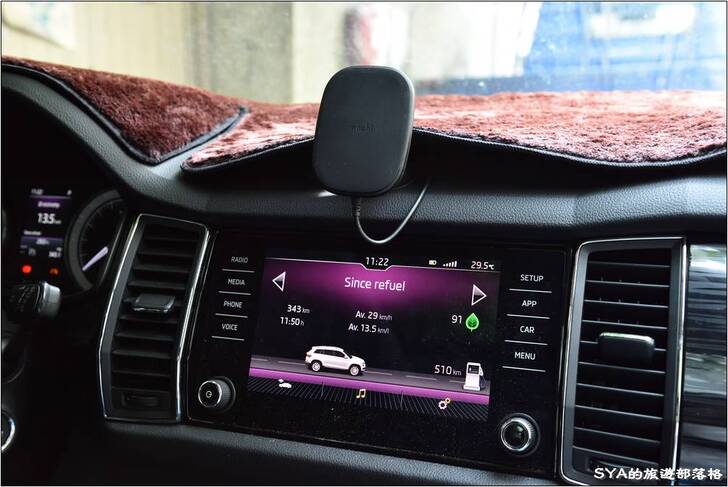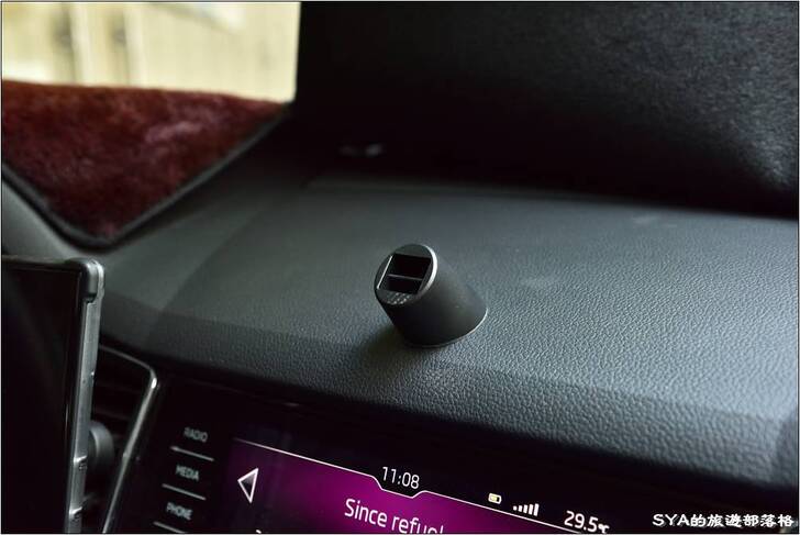 儀表板的固定方式下,固定支架的角度略斜,因此在實際的使用上,不會因為太高而遮蔽過多視線。