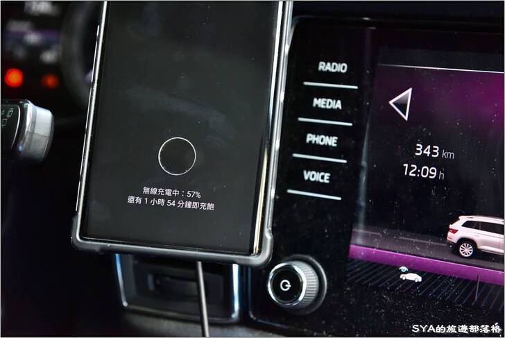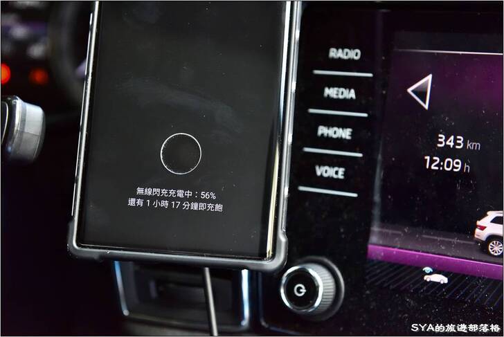 # 再換上Moshi的車用插座或是我原本另一個支援QC3.0的USB插孔。手機下面立即顯示「無線閃充充電中」,且看尚須等待充電的時間的確也有了大幅的縮短。