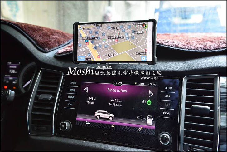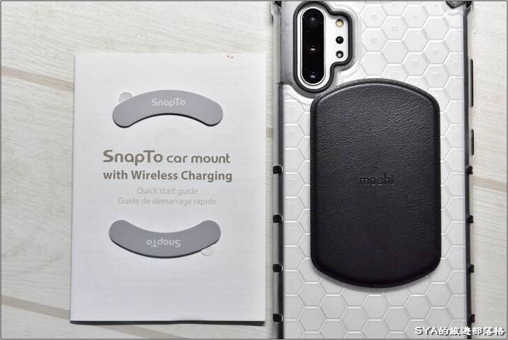 # Moshi SnapTo磁吸無線充電手機車用支架很有質感,與手機接觸的充電側採用霧面的設計,裡面有磁鐵可強力吸附安裝了貼片的手機。